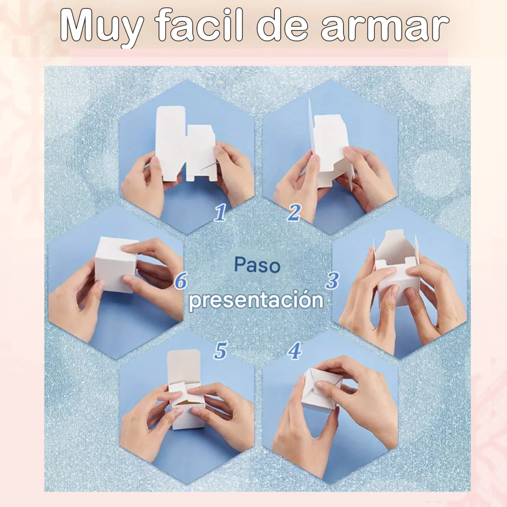 Con un tamaño de 5 cm x 5 cm x 5 cm, es ideal para artículos pequeños como joyas, golosinas, o souvenirs. Deja de preocuparte por encontrar la caja adecuada; ¡aquí la tienes!